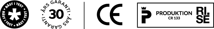 Produkterna är tillverkade i en certifierad P-märkt produktionsprocess vilket säkerställer att produktens kvalité och prestanda håller hög nivå. Certifikat utfärdat av RISE, Reaserch Institutes of Sweden, enligt certifieringsregel 133 ”Certifiering av produktionsprocess för produktion av byggprodukter (P-märkt produktion)” mot referensverk ”Produktion fönster av trä och trä/metall”