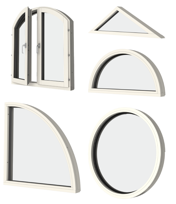 Do not forget that you also can combine with transoms/mullions and glazing bars, which makes the possibilities almost endless. Your window with free form is produced with the same materials and glass as in the product family you choose. Detailed solutions for windows with free forms can be a little different since they may require different design solutions.
