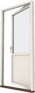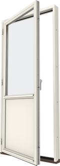 Elitfönster MF Duo Altandörr finns att få som enkeldörr. Välj mellan helglasad, glasad underdel eller fyllning nertill.