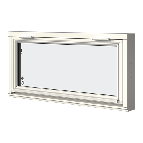Elitfönster MF Duo som överkantshängt fönster har klassiska gångjärn i överkant. Den här modellen gör sig bra på ställen där det passar med ett brett, lågt fönster.