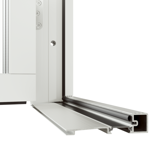 Original Alu Altan- och Fönsterdörr erbjuds med tre tröskelalternativ, här visas mellanalternativet. Tröskel av aluminium, höjd 25 mm.